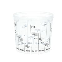 На каждой кружке нанесен стойкий графический принт с меркой, устойчивый к истиранию и разбавителям. Точная шкала позволяет отмерить нужный объем продуктов с соблюдением правильных пропорций смешивания.