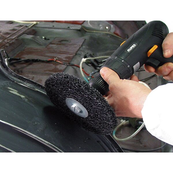 Твердая ткань, пропитанная абразивным материалом, в форме диска, для механического удаления слоев лака, грунта, герметизирующих масс, защитных слоев консервации и ржавчины с кузова автомобиля.