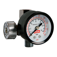 Регулятор давления сжатого воздуха с механическим стрелочным манометром для определения рабочего давления на краскопульте. Смотровое окно из пластика....