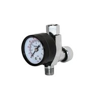 Коаксиальный дроссельный регулятор давления сжатого воздуха с механическим стрелочным манометром для определения рабочего давления на краскопульте. Смотровое...