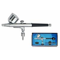 Профессиональный аэрограф с верхним бачком. Сопло 0,3мм. Рабочее давление 1,-3,5 Bar. Бачек 7см3. Комплект с пипеткой, фитингом и ключем. Регулировка...