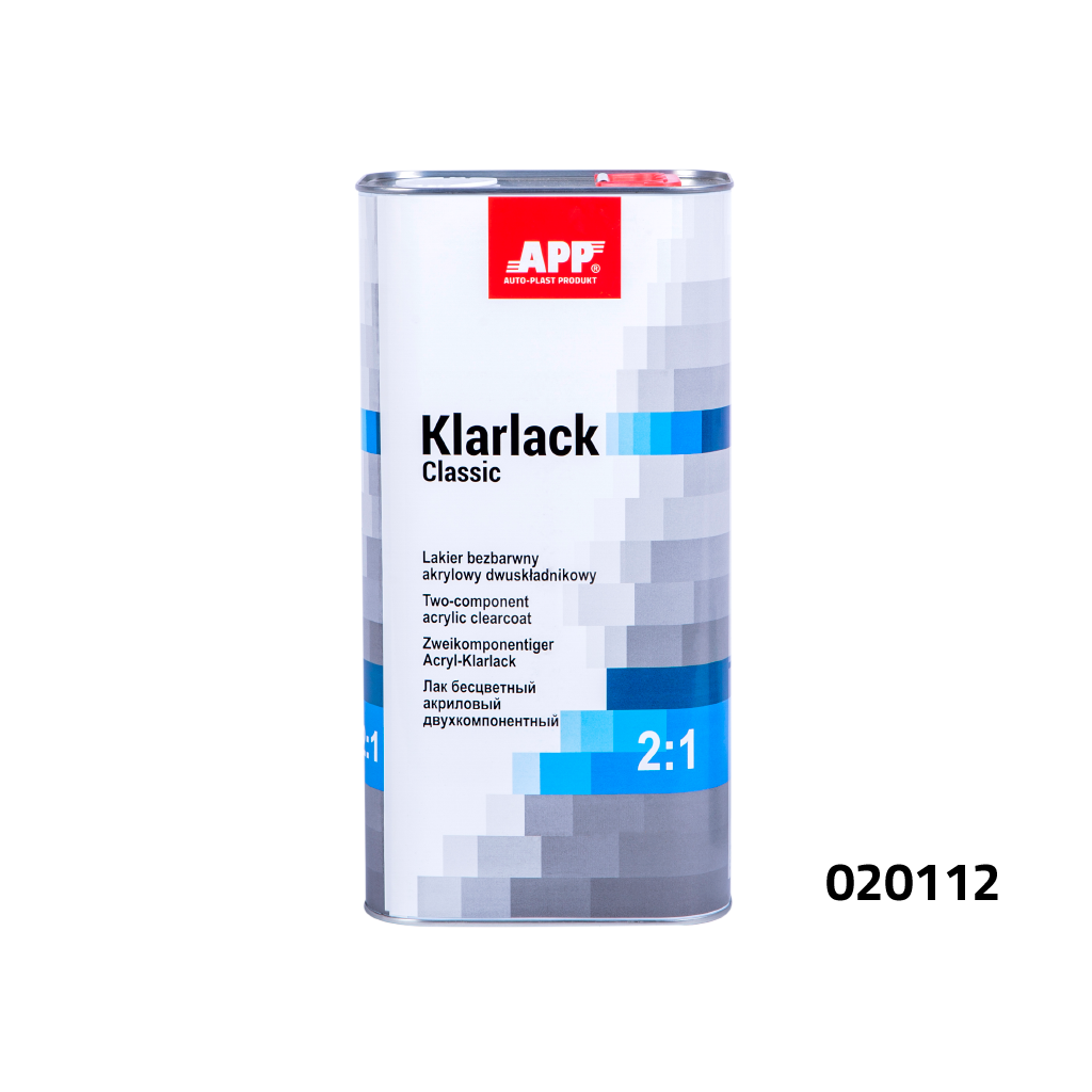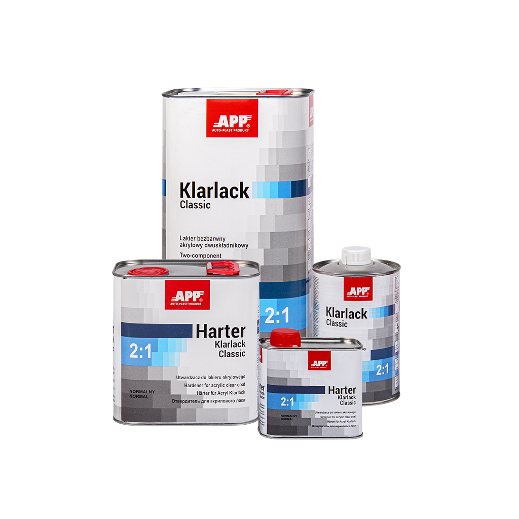 APP Klarlack Classic — двухкомпонентный прозрачный акриловый лак класса HS с сильным блеском. Он имеет хорошую текучесть и очень хорошую прозрачность, а также обеспечивает хорошую глубину цвета. Благодаря использованию УФ-фильтров обеспечивает стойкость цвета сольвентного базового покрытия и покрытия на водной основе. Предназначен для ремонта кузова автомобилей целиком и частично в качестве высококачественного финишного слоя в двухслойных покрытиях. Благодаря применению отвердителей XLHN / XLHS, а также возможности добавления разбавителя APP 2K Verdunnung, акриловый лак APP 2K HS Klarlack Classic пригоден для работы в широком диапазоне температур и дает возможность получения различных структур лака. Используется с базовыми водорастворимыми и обычными красками.