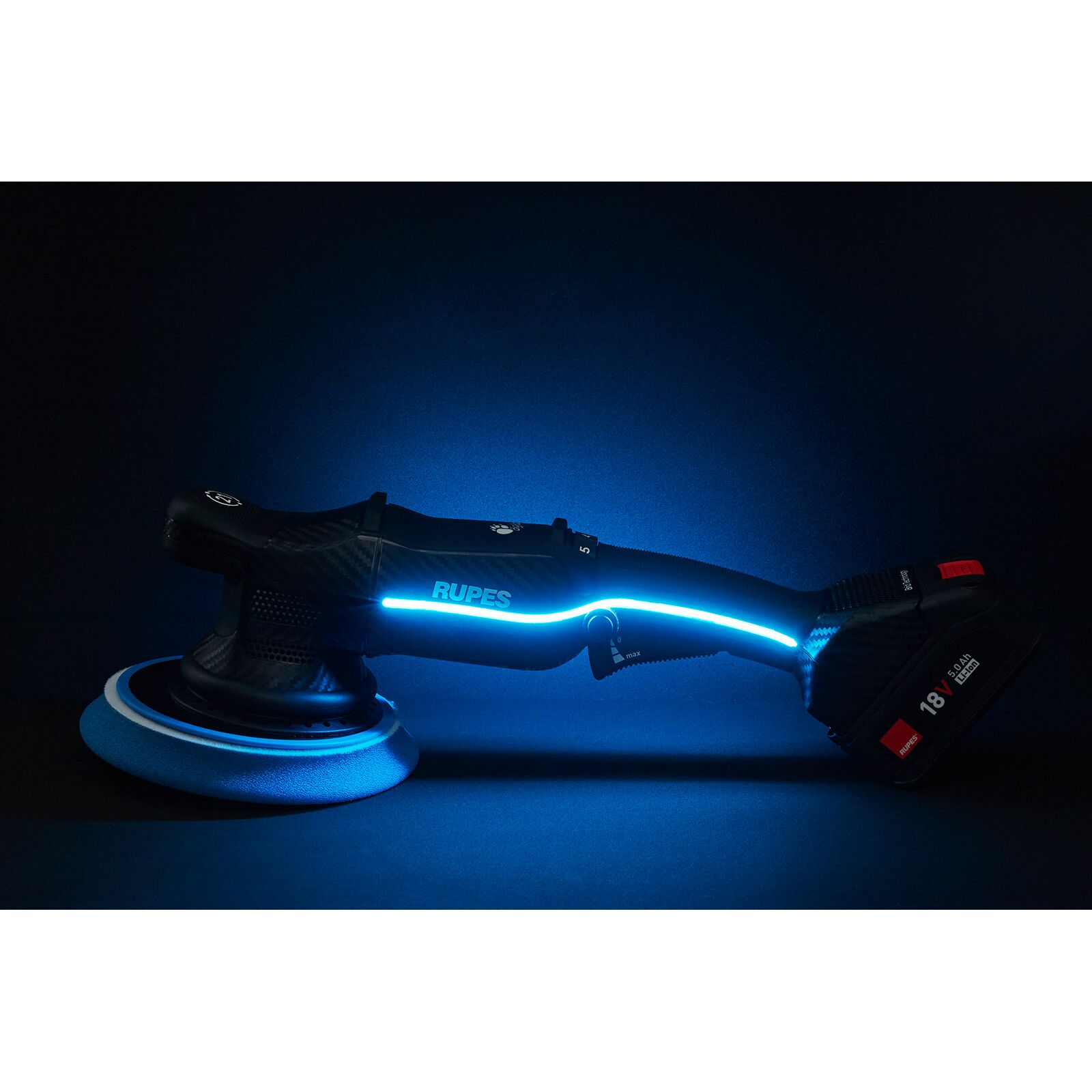 Помимо переключателя, который регулирует обороты в диапазоне 3000-5000об/мин, машинка снабжена электронным курком с прогрессивной регулировкой от 500об/мин, что делает удобным нанесение пасты и полировку в отвественных, сложных участках кузова.