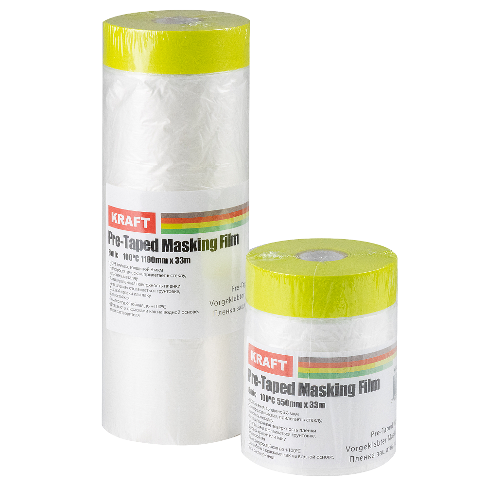 Пленка укрывная "KRAFT PRE-TAPED MASKING FILM" со скотчем,защитная, электростатическая, влаго/температуростойкая