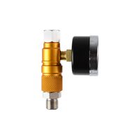 Коаксиальный дроссельный регулятор давления сжатого воздуха с механическим стрелочным манометром для определения рабочего давления на краскопульте. Смотровое окно закрыто стеклом.