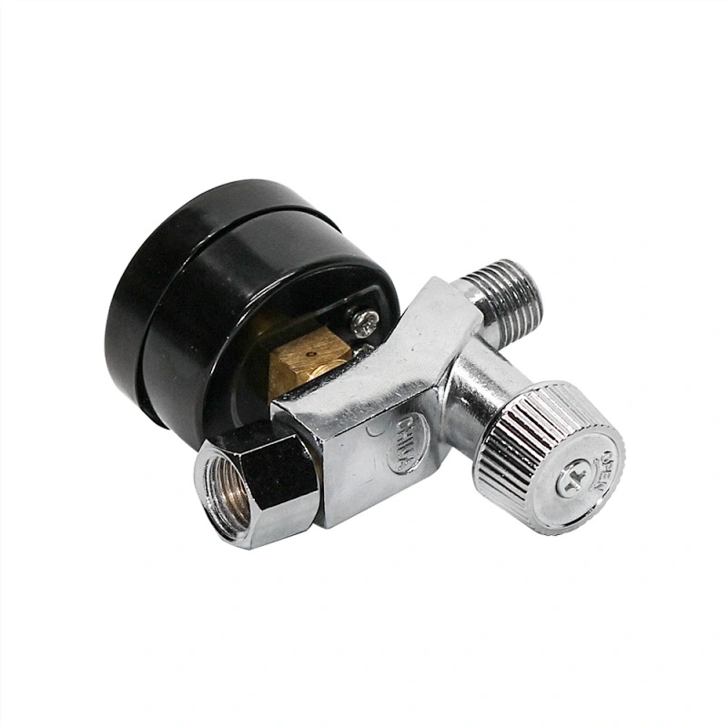 Регулятор давления сжатого воздуха «KRAFT MANO» с механическим стрелочным манометром для определения рабочего давления на краскопульте. Смотровое окно из пластика.