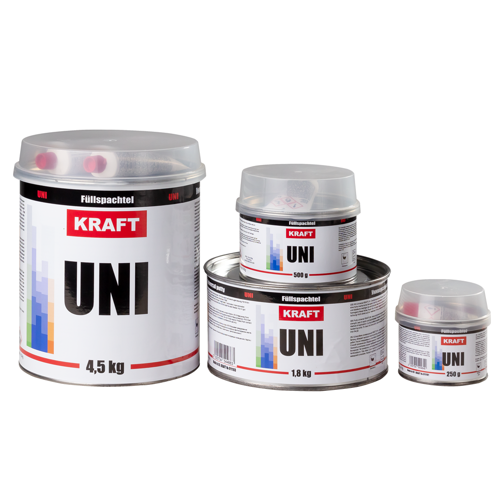 Шпаклевка полиэфирная мелкозернистая универсальная, характеризуется хорошими свойствами при нанесении слоев любой толщины. Оптимальная твердость и отсутствие пор позволяют использовать шпаклевку как наполнитель, и как финишную шпаклевку. Разработана для использования на стальных поверхностях, и стеклопластиковых деталях. Предназначена для сухой ручной и машинной обработки. Не засоряет абразивный материал во время шлифовки. Глубокие дефекты заполняются в несколько слоев.