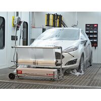 Конструкция тележки позволяет одному человеку защитить кузов транспортного средства на время покраски и выполнять различные ремонтные операции.