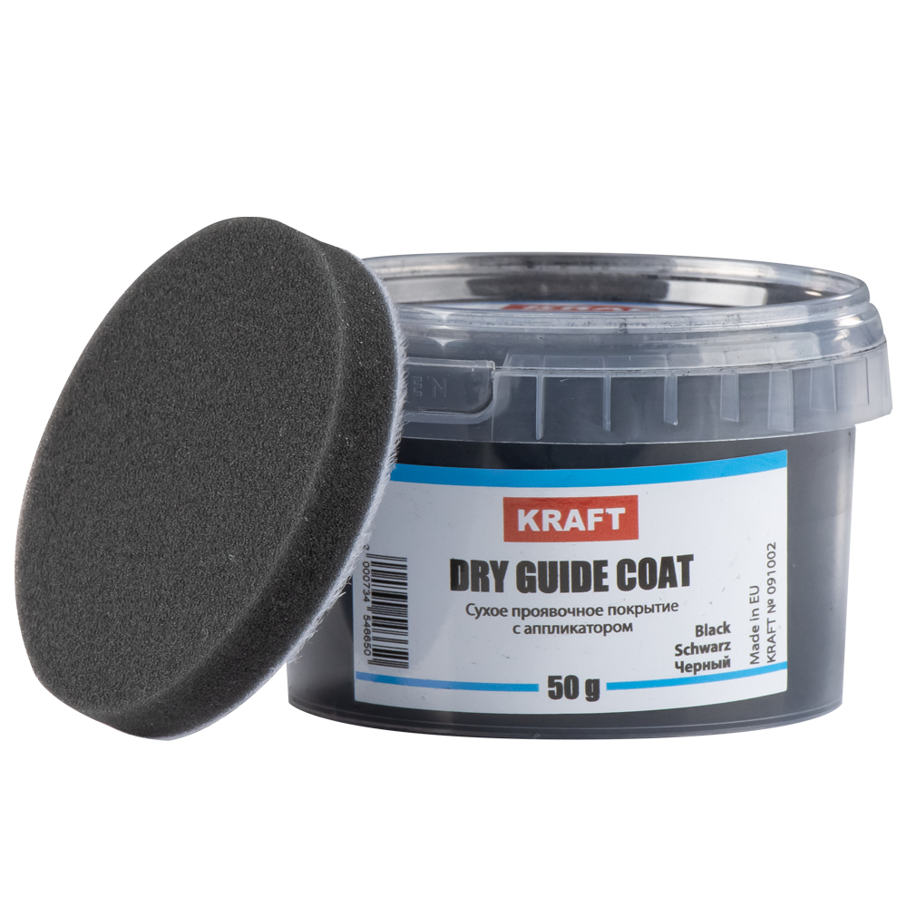 KRAFT DRY GUIDE COAT - контрольная пудра черного цвета для проверки качества шлифуемой поверхности. Позволяет быстро и эффективно выявить дефекты обработанной поверхности: поры, царапины, неровности, что позволяет наглядно определить, какую область еще нужно дошлифовать. Не содержит растворителей. Для сухой и мокрой обработки. Комплект содержит пудру и аппликатор для равномерного распределения порошка по всей шлифуемой поверхности.