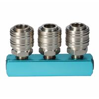 Тройнай розетка с быстросъемным соединением. Предназначена для подключения сразу трех потребителей к одной пневматической линии. Подключение - 1/4" с двух сторон розетки.