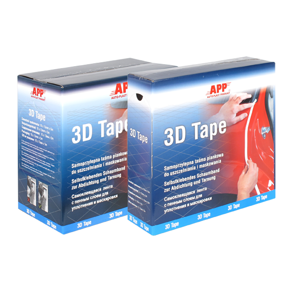 APP 3D Tape - мягкая, гибкая, самоклеящаяся лента для заклеивания щелей, например, крышки капота, багажника, дверей. Изготовлена из вспененного полиэтилена и каучукового клея. Эффективно препятствует проникновению лака и краски внутрь окрашиваемого транспортного средства.